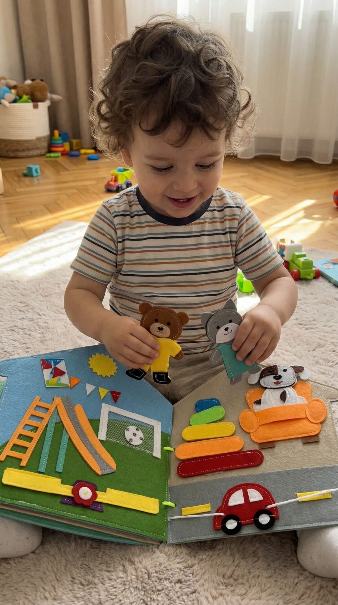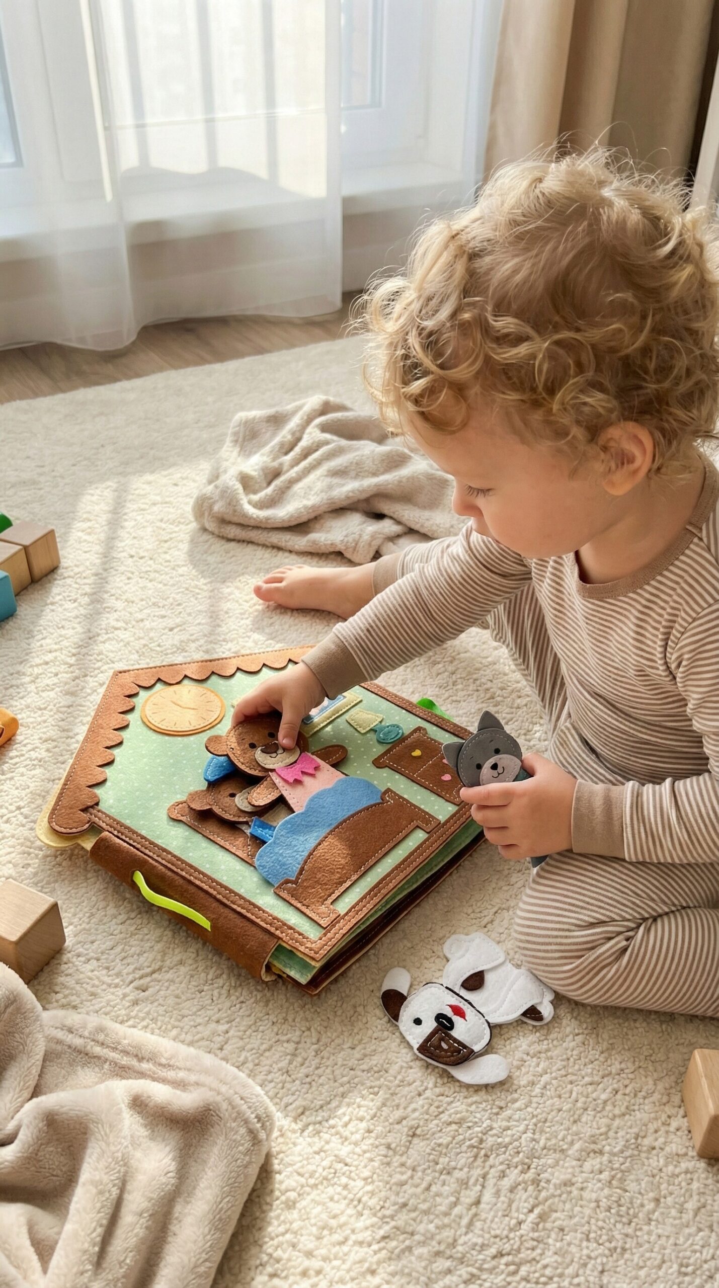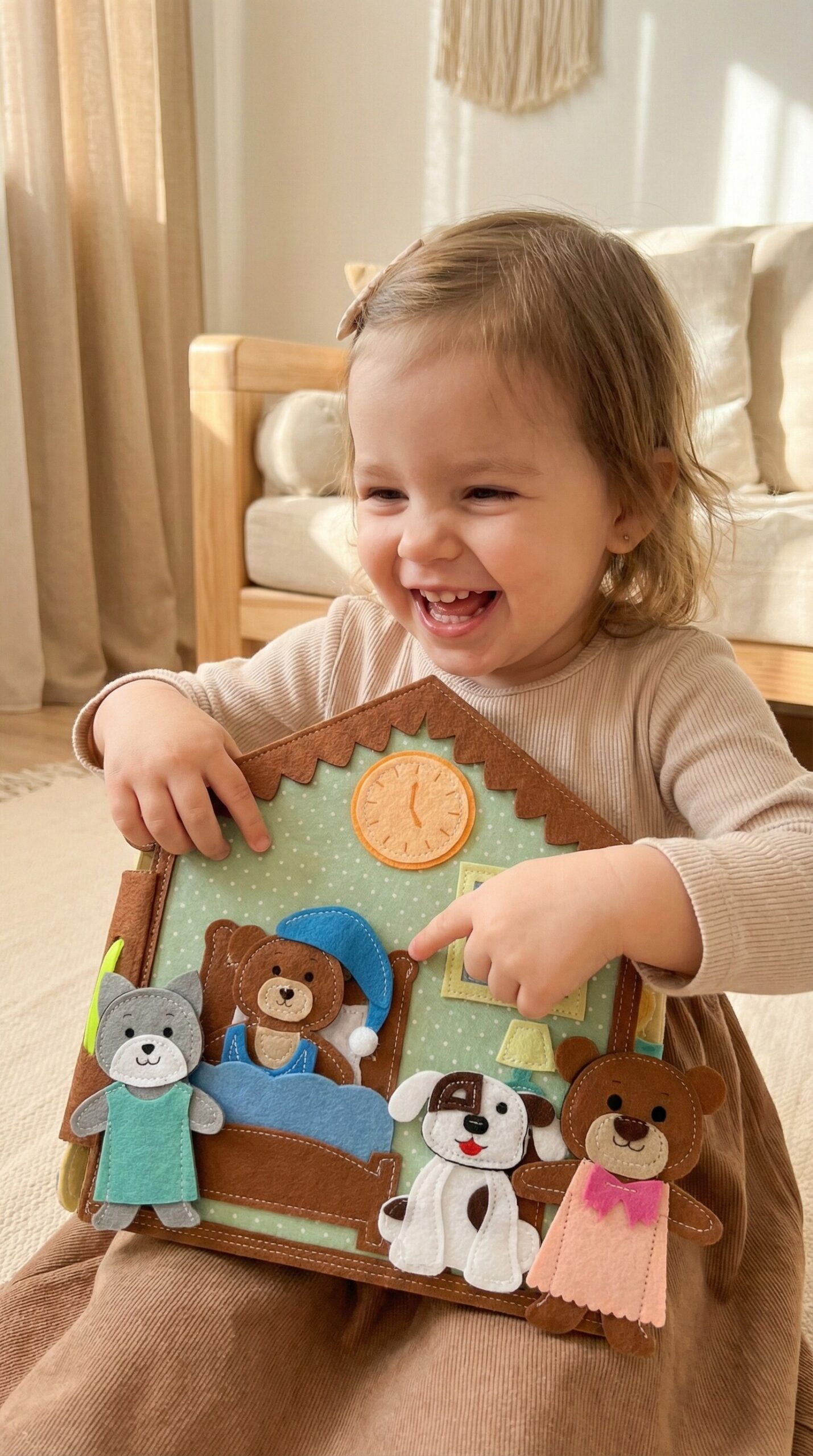 ✅ Finommotorikus készségek: A gyerekek az olyan interaktív elemek használatával, mint a cipzárak, gombok, tépőzárak, megtanulják az ujjak és a kezek finom, összetett és koordinált mozgatását.