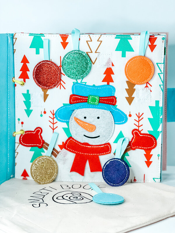 Hóember és díszek: Húzd le a színes díszeket és rendezd el őket a saját ízlésed szerint. Meg tudod nevezni az összes színt? Hány darab csillámos? Tapogasd meg őket.