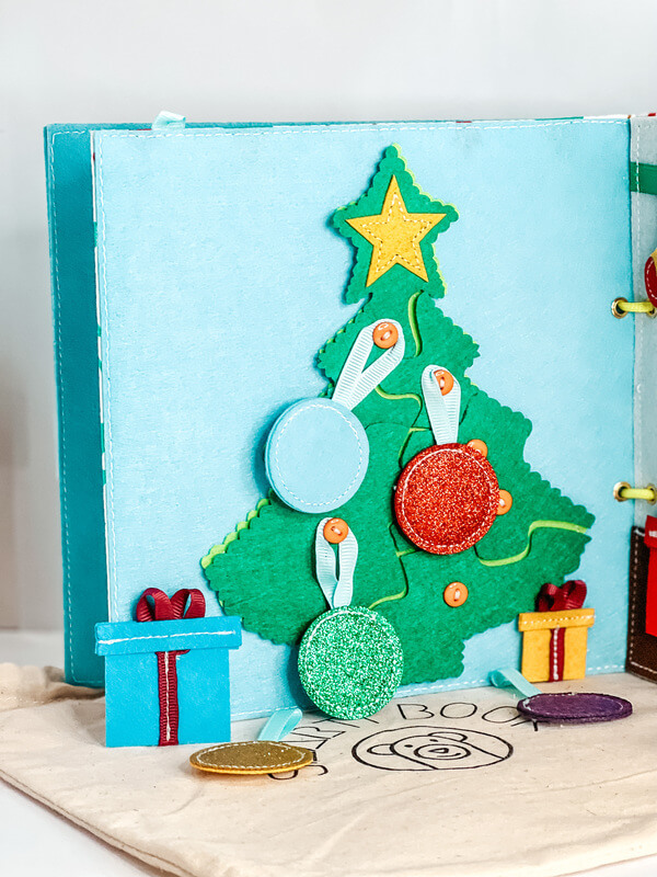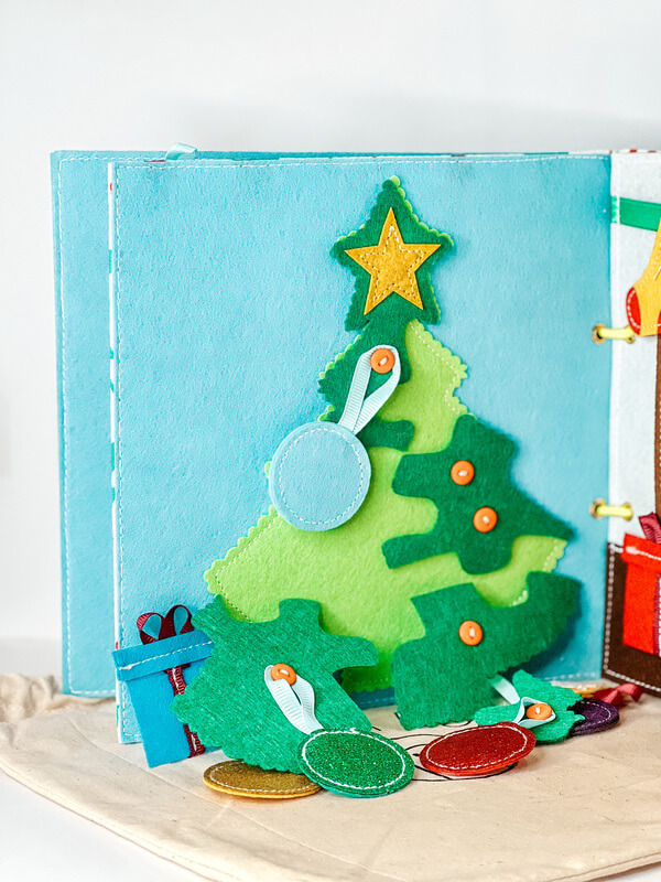 Díszítsd fel a fenyőfát: Rakd össze a kirakóst és megkapod a fenyőfa formáját. Ügyesen akaszd fel a díszeket a gombokra és el is készült a fenyőfa. A karácsonyfa alá ajándékokat is helyezhetsz.
