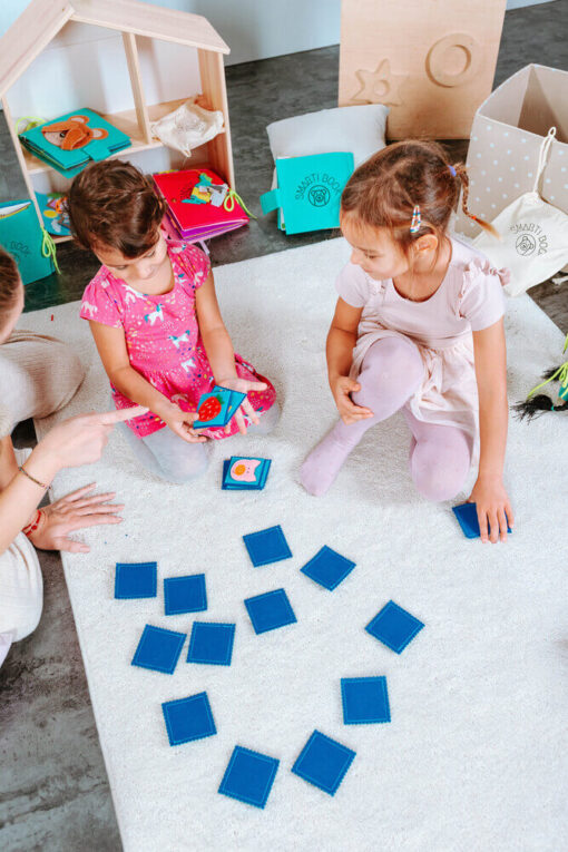 A játék testreszabható, 3-4 éves korig a képekkel felfelé fordítva ösztönözheted gyermekedet párosításra.