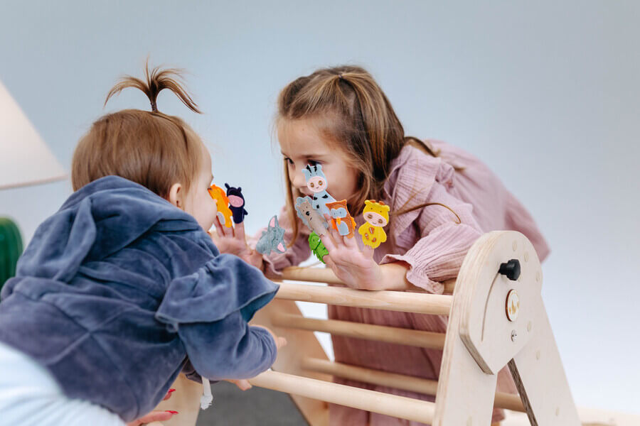 Később a gyermekek megtanulják bebújtatni ujjaikat a bábukba, ujjaik mozgatásával önállóan irányítani őket. Ha a bábuk felkerültek az ujjakra, a játék szavakkal folytatódik tovább – a történet gyermeked fantáziájára van bízva. A figurákkal újabb és újabb meséket “írhatnak”, a történetmeséléshez a szülők is bátran csatlakozhatnak.
