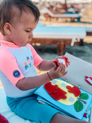 Miért vinnél magaddal egy halom játékot az utazásra, ha egy csendeskönyv mindent egyben kínál? Minden oldal egy új tevékenységet mutat be, amely oktatja és szórakoztatja a gyermeket.