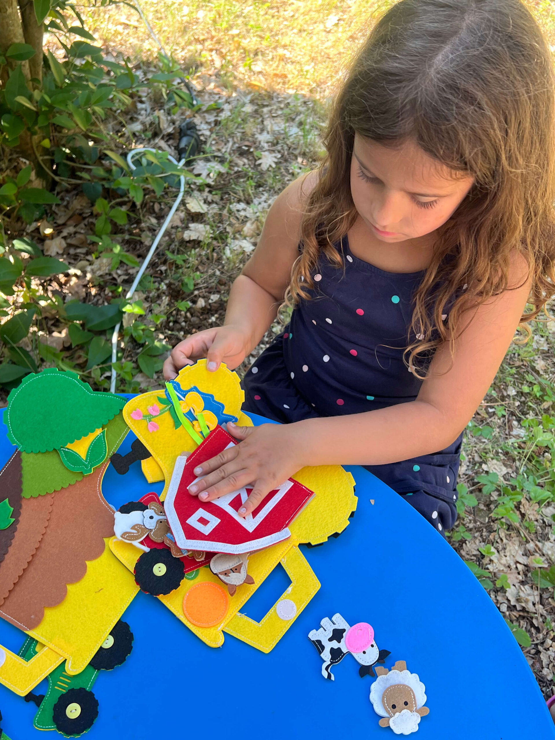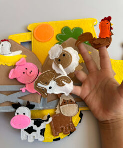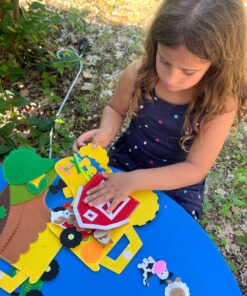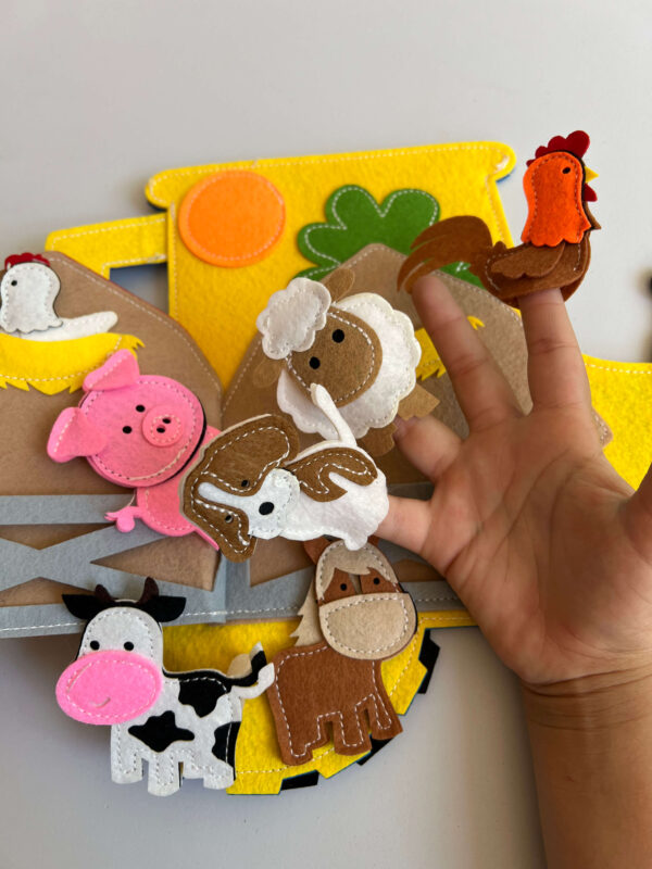 A réten és az istállóban háziállatok élnek – tehén, bárány, tyúk… A gyermek megnevezi őket, eteti, mozgatja vagy „beszélget” velük. Ez a tevékenység bővíti a szókincset és támogatja a világ megismerését.
