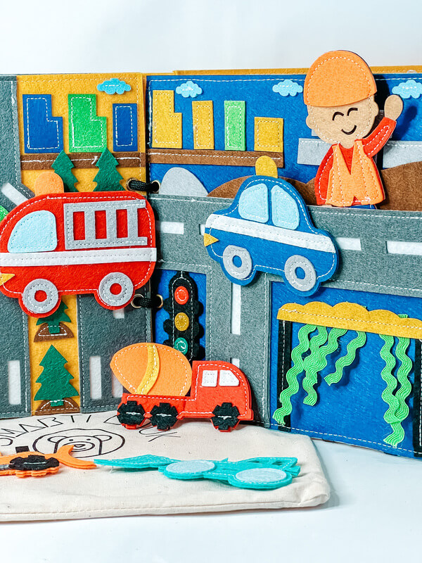 A csendeskönyv 9 tevékenységi oldalt tartalmaz, alkalmazása 2 éves kortól javasolt. A tevékenységeken keresztül a gyermek megismerheti a tűzoltó, a rendőr, a mentő, a mezőgazdász, valamint az építőmunkás feladatait. Többek között olyan aktivitások várnak rá a könyvben, amelyek lehetővé teszik a szerepjátékot, a képzelőerejük fejlesztését. A mágneses daru segítségével házat építhetnek, mentőjárművekkel érkezhetnek a baleset helyszínére, ugyanakkor tűzoltóautóval elolthatják a tüzet. A könyv sok kiegészítőt tartalmaz, amelyekkel a gyermek gazdagíthatja az egyes tevékenységeket. A játék révén a gyermek fejleszti finommotorikus készségeit, logikus gondolkodását, ugyanakkor megismerkedik különböző mintákkal, közlekedési szabályokkal, és megtanulja hatékonyan kezelni a problémákat.