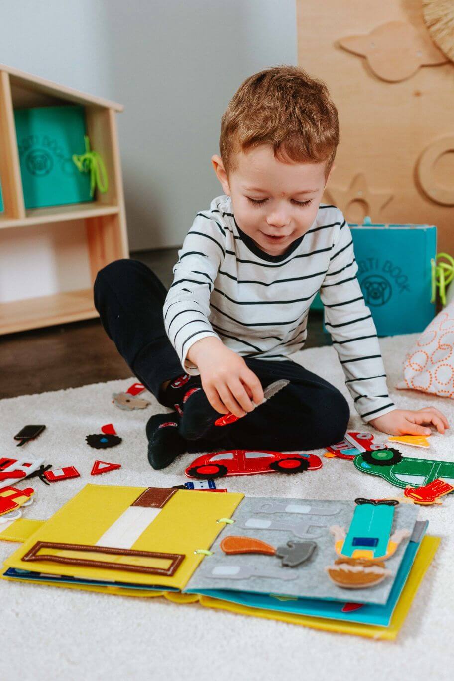 ✅ Finommotorikus készségek: A gyerekek az olyan interaktív elemek használatával, mint a cipzárak, gombok, tépőzárak, megtanulják az ujjak és a kezek finom, összetett és koordinált mozgatását.