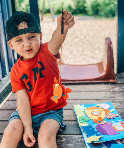 A nap egy éhes pelikánnal indul. A gyermek megkeresi a halacskát, és beleteszi a pelikán csőrébe. Vajon sikerül lehúzni a cipzárt is? Ez a játék segíti a kéz-szem koordináció és a pontosság fejlődését.