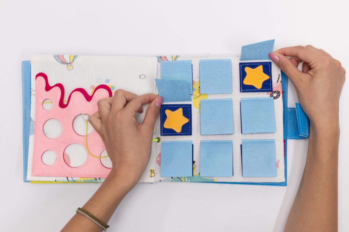 ✅ Finommotorikus készségek: A gyerekek az olyan interaktív elemek használatával, mint a cipzárak, gombok, tépőzárak, megtanulják az ujjak és a kezek finom, összetett és koordinált mozgatását.